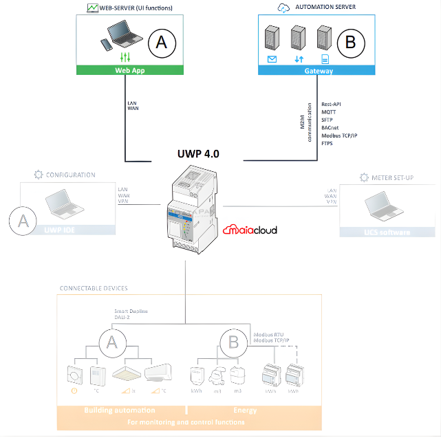 UWP 4.0 hỗ trợ đồng thời nhiều chuẩn kết nối phổ biến trong công nghiệp và toà nhà: